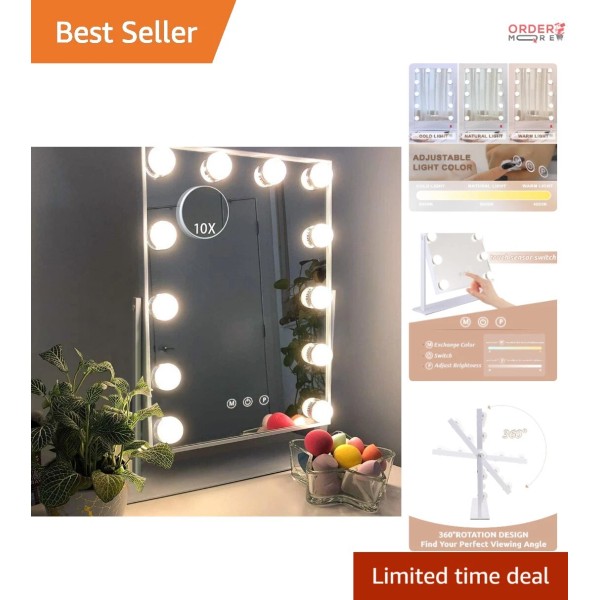 Vanity Mirror Metal 12x16" 12 Dimmable Bulbs 3 Color Modes Makeup Use