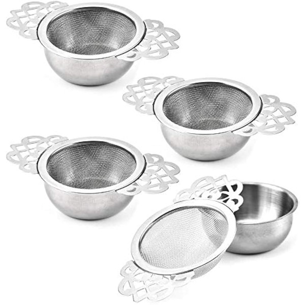Vankcp 4 Set Tea Strainers with Drip Bowls, Loose Leaf Tea Strainers with Double Winged Handles Extra Fine Mesh Tea Infuser Brew Loose Leaf Tea, Spices, Seasonings