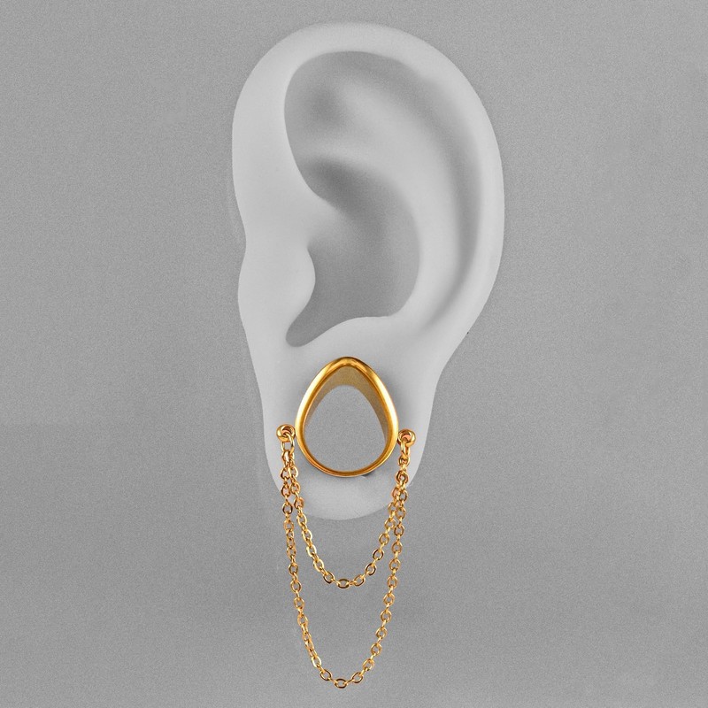 Vankula Ear Tunnel with Pendant 1 Pair Double Flared Flesh Plugs Teardrop Shape with Chain Stainless Steel for Men Women Ear Piercing Jewellery 6 mm to 25 mm, Metal