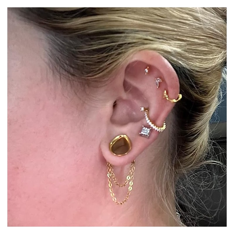 - Stainless steel ear tunnel with pendant adopts double flared simple design, easy to slip in, but they do not fall out for a long time wear, suits for stretched ear praise.