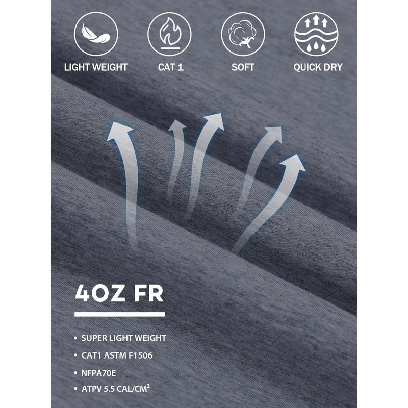 VANLENS FR Shirts for Summer 4oz Lightweight Flame Resistant Base Layer CAT1 Fire Retardant Crew Shirt