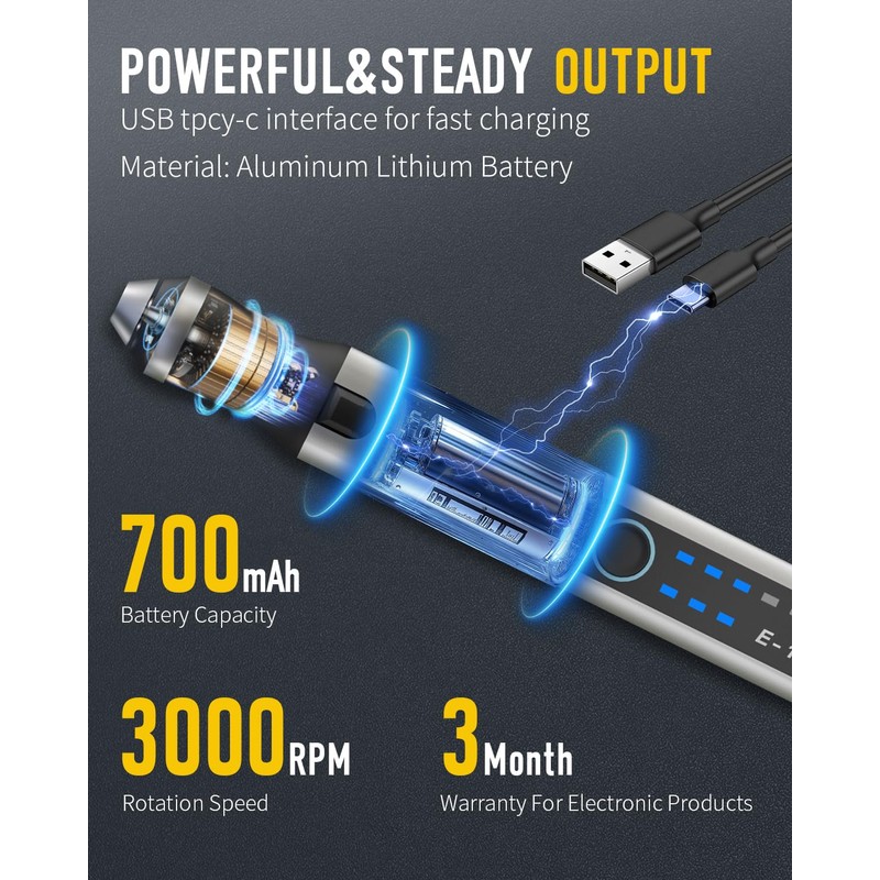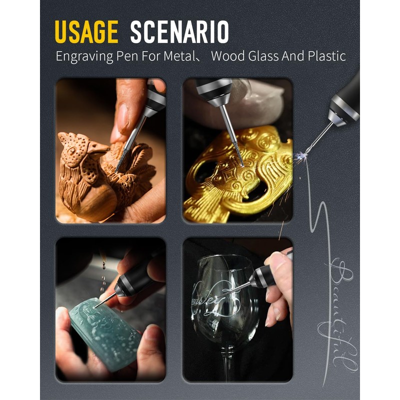 - All-Material Engraving Performance 25mm chuck depth locks blades for stable engraving pen for all materials. USB-C rechargeable electric engraving pen works with standard 5V adapters. Professional-grade 10W motor handles 30+ blade types from polishing to drilling.