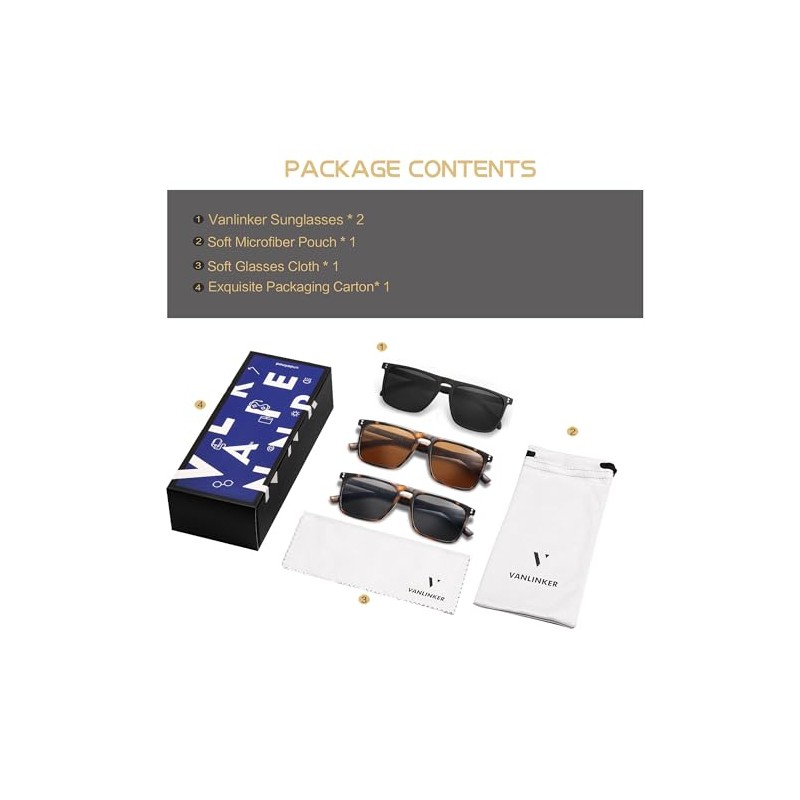 - UV400 PROTECTION & HD POLARIZED LENSES: Vanlinker lens utilizes industry-leading 9-layer filtration. UV400 protection coating can protect your eyes perfectly by 99.9% blocking harmful UVA, UVB & UVC rays. HD polarized lenses can filter out sunlight glare and reduce eye fatigue. Restore true color, eliminate reflected light and scattered light, and help you see better.
