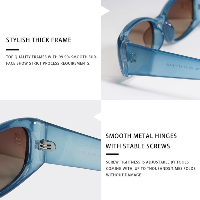 VANLINKER Trendy Small Polarized Rectangle Sunglasses for Women Men Retro 90s Shades Blue