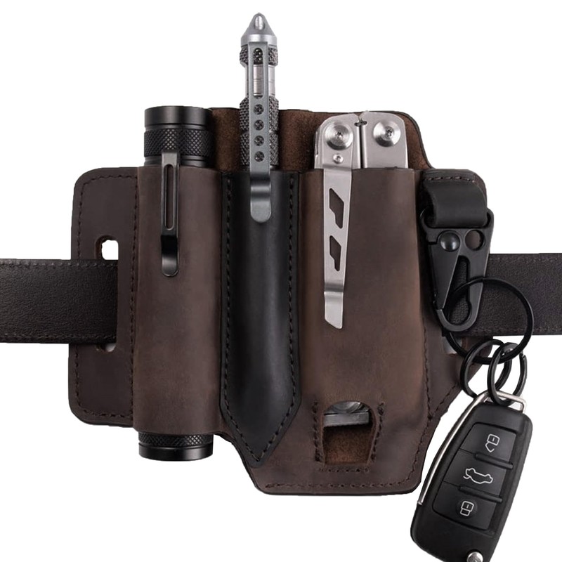 - 【Practical Gift Choice】The leather multitool sheath is a stylish leather craft and a practical gift choice for men to carry on the belt for daily life. The EDC Pocket Organizer could free your mess pocket and it is very convenient to carry your EDC stuff every day. This Multitool Holder is the best choice for giving to your friends, boyfriend, husband, father, etc. on birthdays, Father's Day, Christmas, Halloween, Thanksgiving, and other holidays.