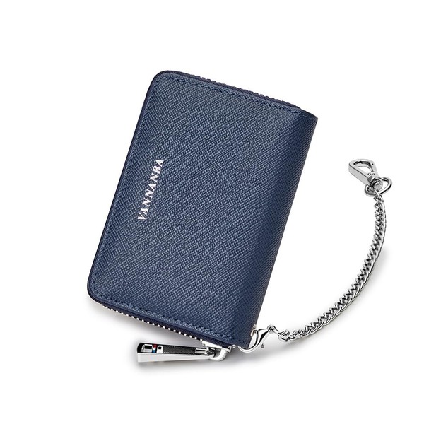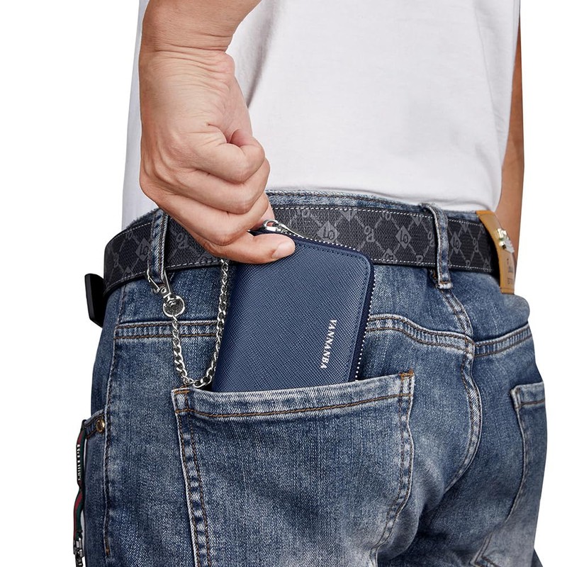 VANNANBA Chain Wallet Zipper Large Capacity Organizer Accordion Wallet Genuine Leather Purse RFID Blocking Wallet for Men, blue10, Chain Wallet