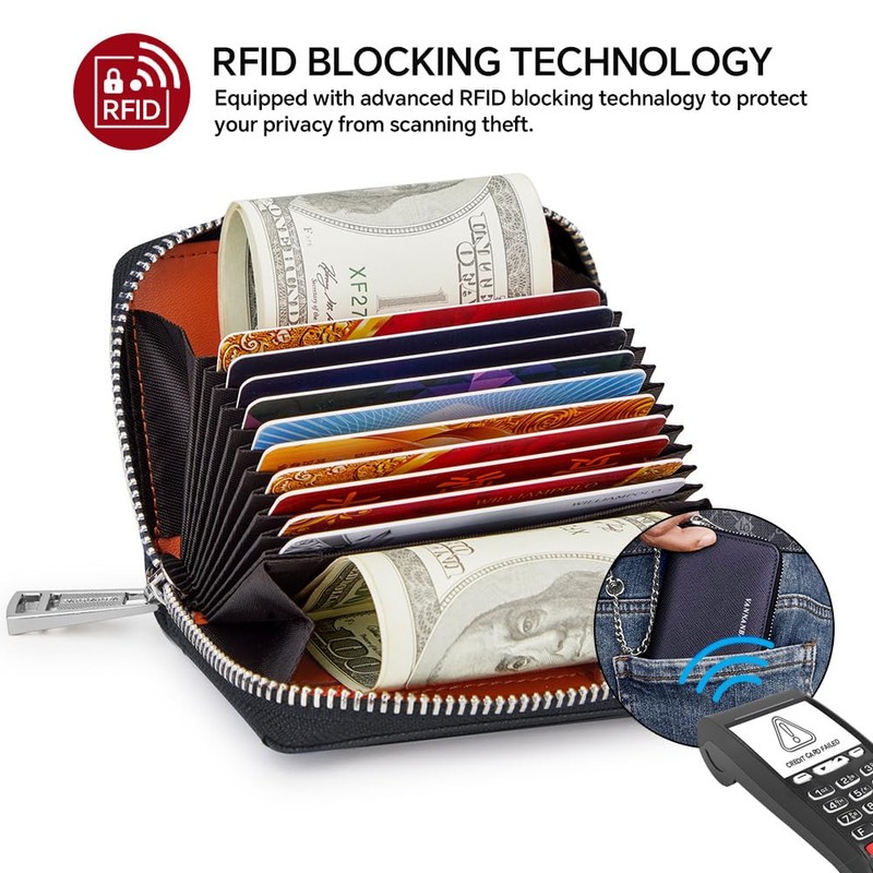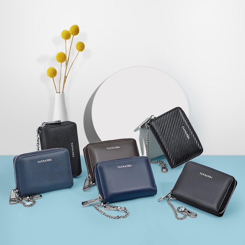 VANNANBA Chain Wallet Zipper Large Capacity Organizer Accordion Wallet Genuin...