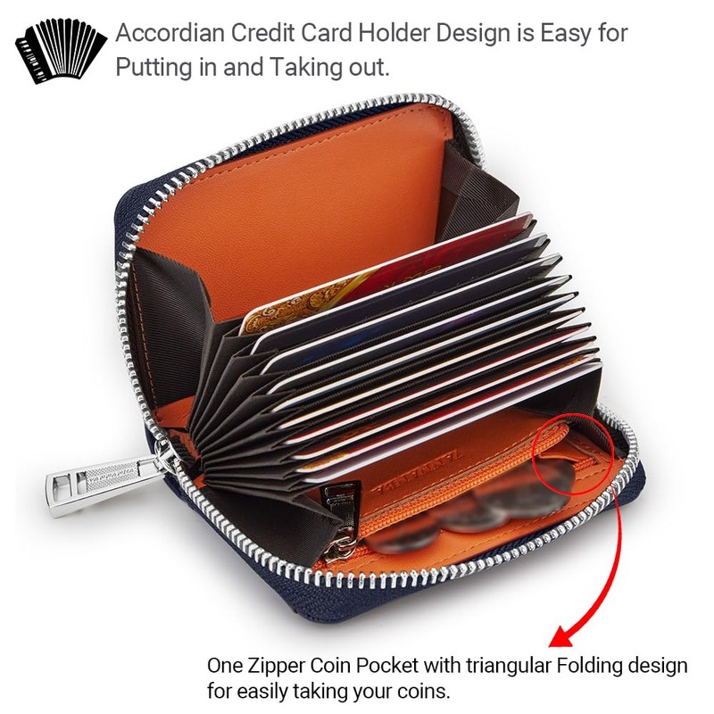• Accordion Design: The credit card compartment has an accordion design so you can place your cards vertically instead of horizontally. It saves space and is convenient for your travel.