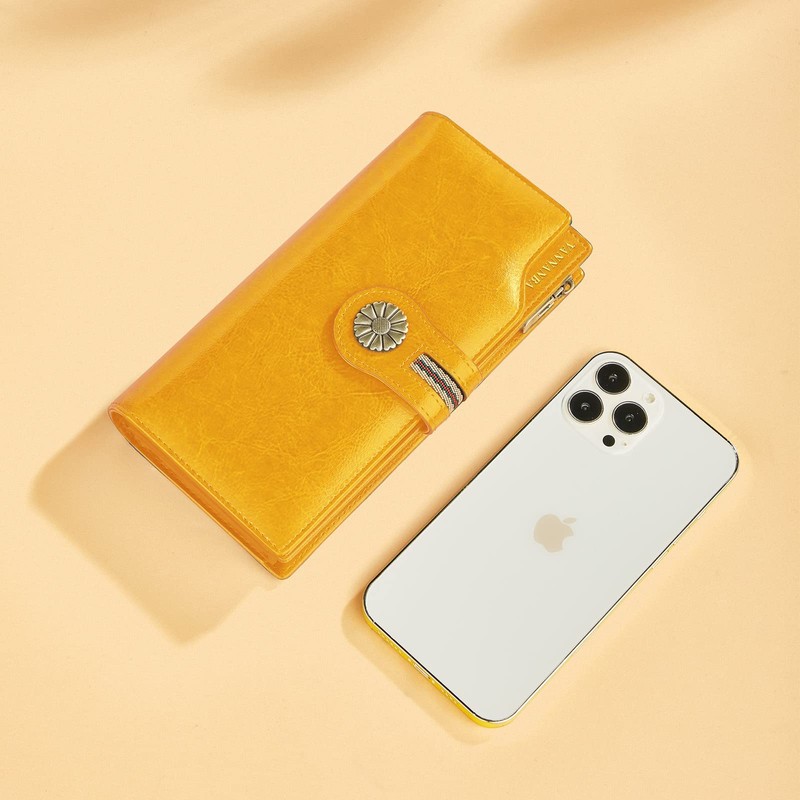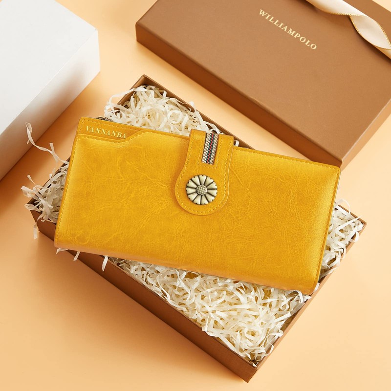 VANNANBA Womens Genuine Leather Large Travel RFID-Blocking Zip Phone Clutch Wallet/Wristlet(yellow)