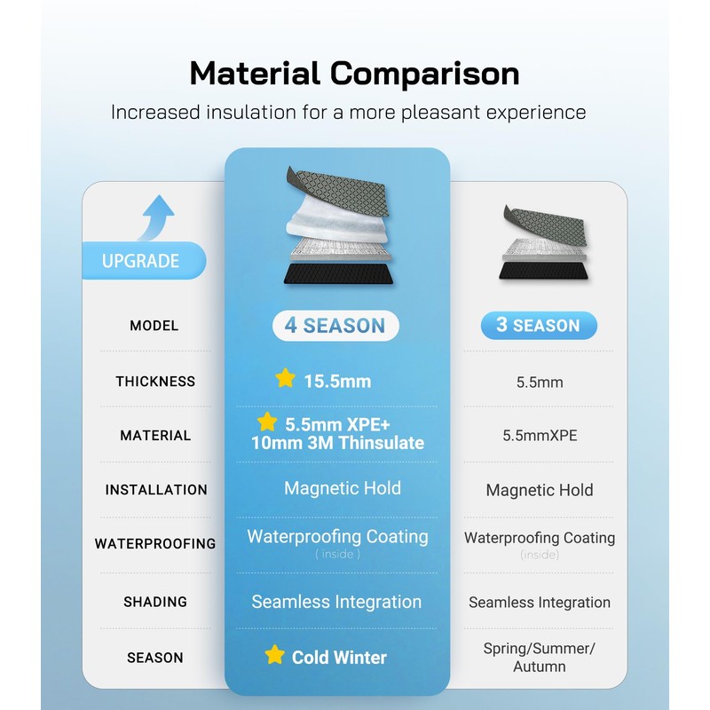 - Enhanced Thermal Protection: This 4-season window cover features a 6-layer structure, combining five layers of premium insulation with a thick cotton core. It provides excellent sun protection by reflecting heat away in summer, while the added cotton layer helps trap warmth inside during winterperfect for all-season van life