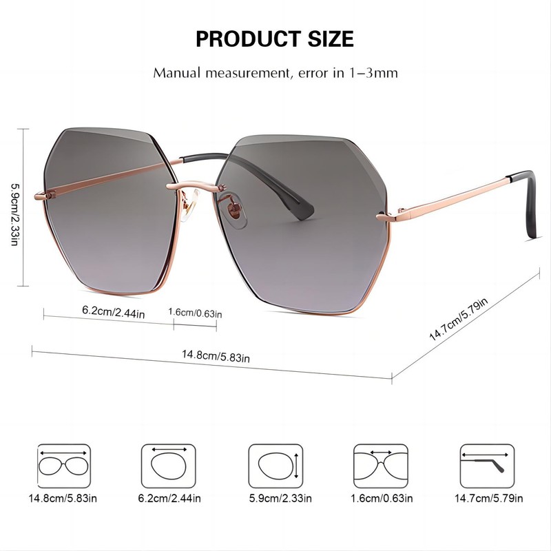 - RETRO & STYLISH: The oversized square rimless design with a diamond cutting-edge style gives these sunglasses a chic, modern look. The brown-grey and grey-pink transparent lenses give the appearance of makeup on your face. Combining a retro outlook with modern high-tech materials, these soft square-shaped sunglasses with a pointed outline make you look smart and dynamic.