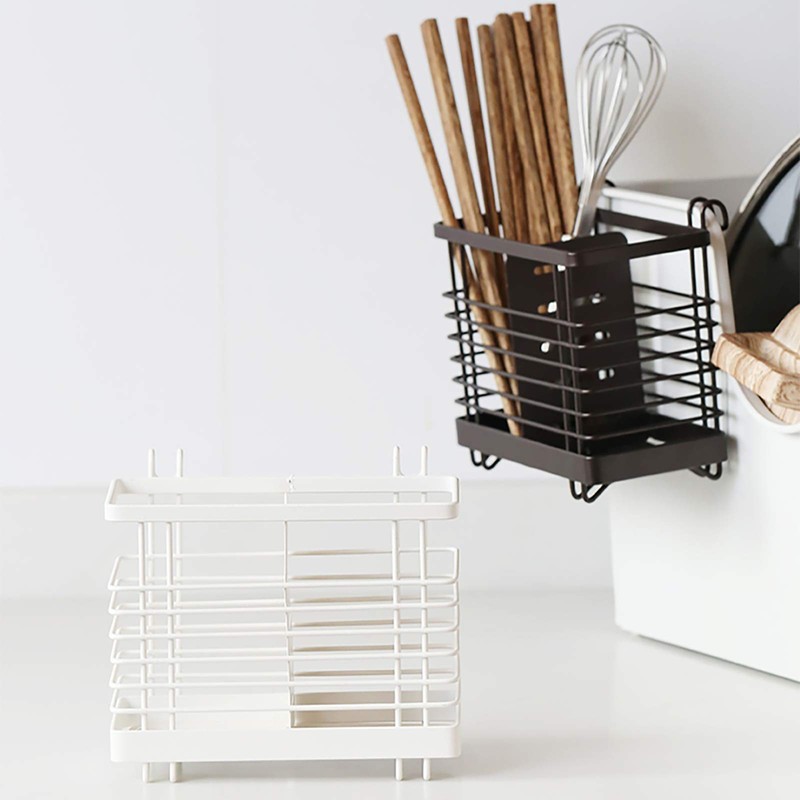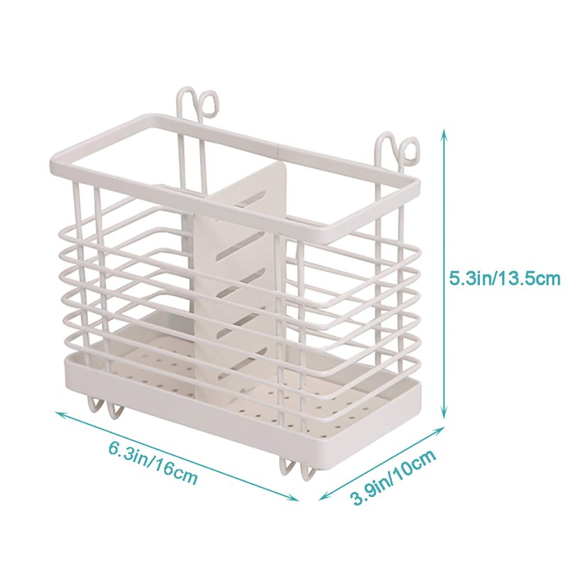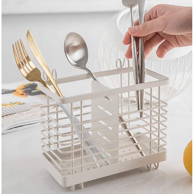 VANRA 箸立て カトラリースタンド 水切り スプーン・フォーク収納可能 ステンレス製 2つのコンパートメント フック付き (ホワイト)