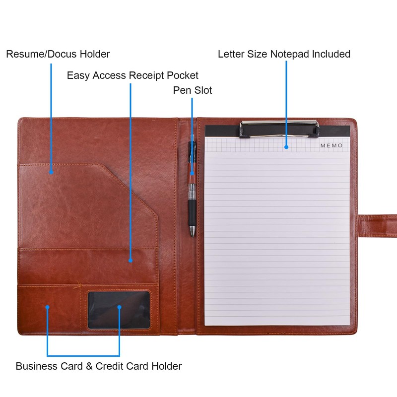 VANRA Padfolio Clipboard Folder Leather Portfolio Binder Organizer Interview ...