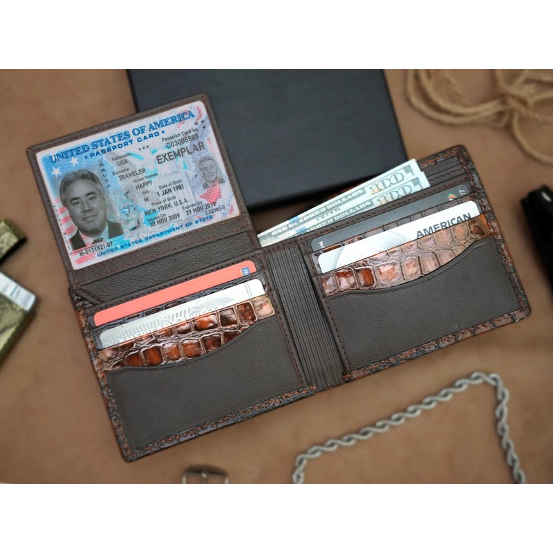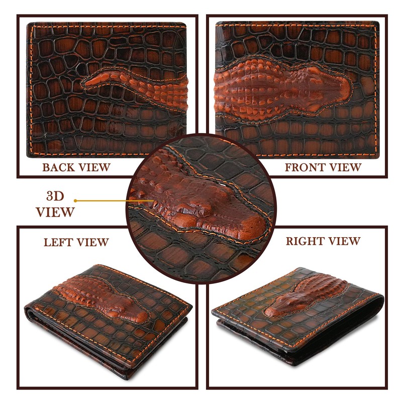 - PREMIUM HANDCRAFTED 3D CROCODILE DESIGN - Meticulously handmade leather bifold wallet featuring authentic crocodile-embossed cowhide exterior with stunning 3D full-body crocodile design patch crafted from premium tan full-grain leather. The dimensional crocodile patch is expertly embossed and hand-stitched to create a striking raised effect that literally rises from the precisely cut crocodile pattern cutout, showcasing exceptional craftsmanship and making each wallet a unique work of art