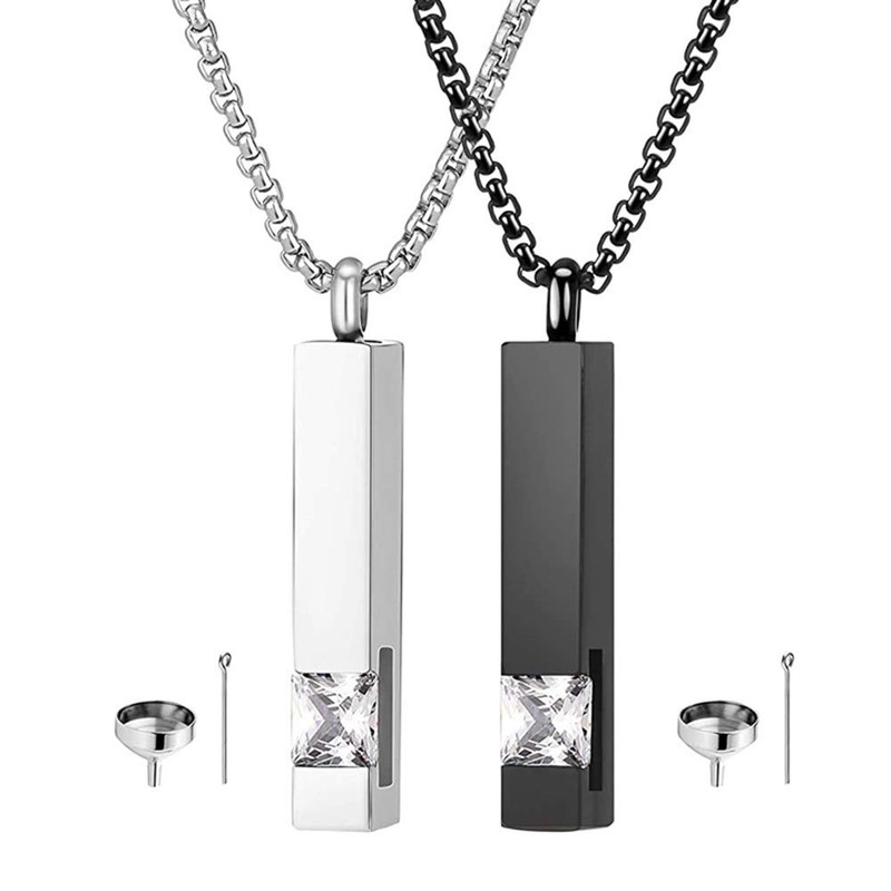 Vanski 2 Pcs Urn Necklaces for Ashes, Vertical Bar Cremation Memorial Keepsake Pendant Necklace Jewelry with Fill Kit
