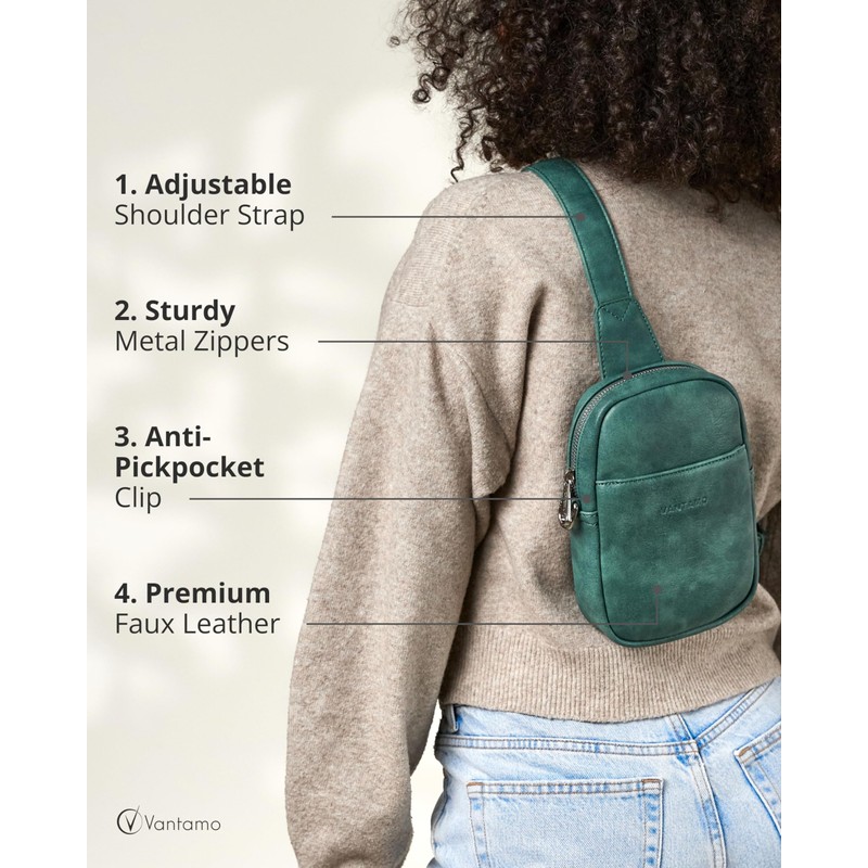 Vantamo Crossbody Bags for Women: RFID Blocking Vegan Bag with Anti-Pickpocket Clip - 02 Forrest - Faux Leather Strap