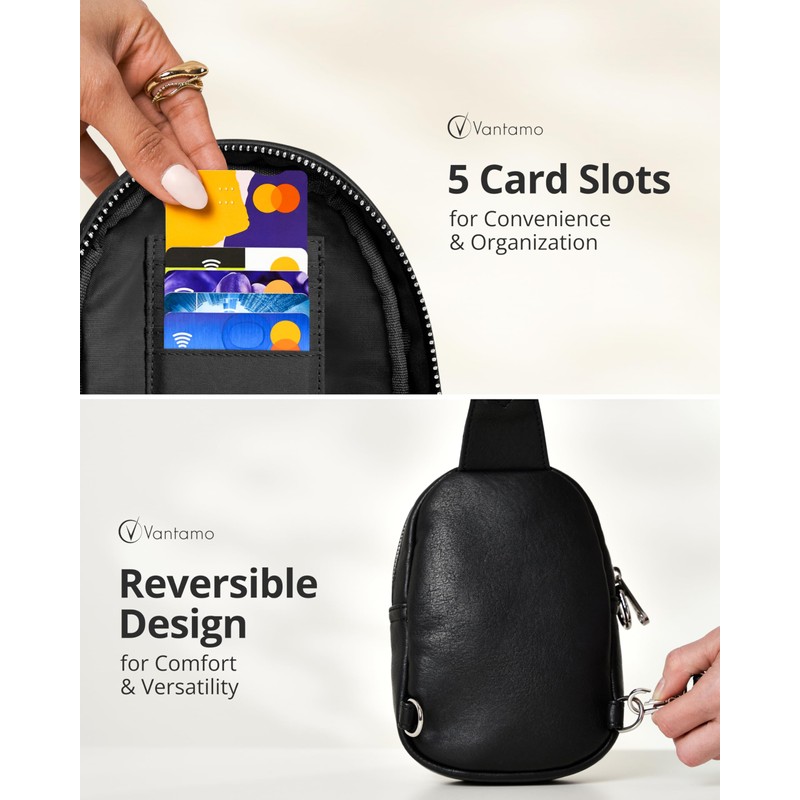 Vantamo Crossbody Bags for Women: RFID Blocking Vegan Leather Sling Bag with Anti-Pickpocket Clip