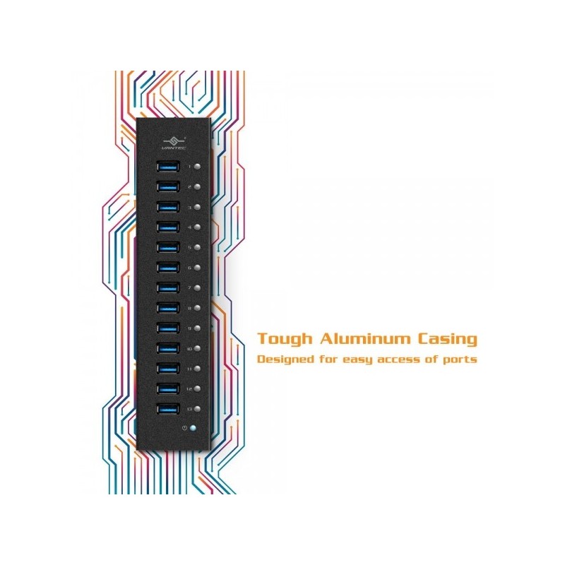 Vantec 13-Port USB 3.0 Aluminum Hub (All Data/Charging BC 1.2), 12V/5A Premium