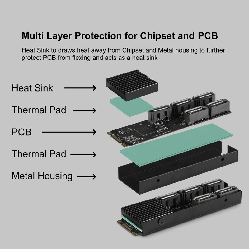 - Provide 5 SATA ports via M.2 PCIe