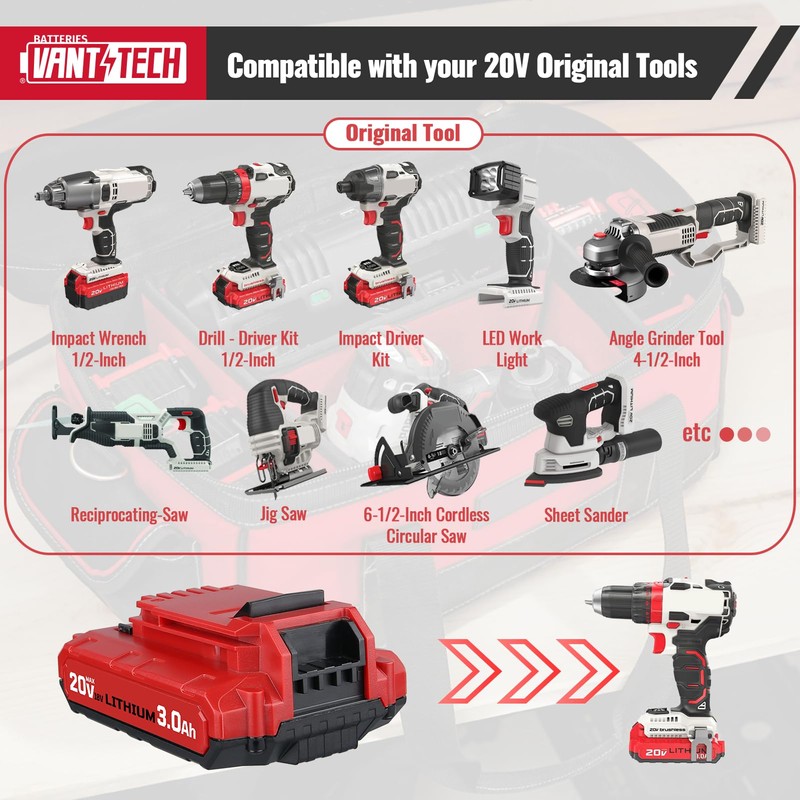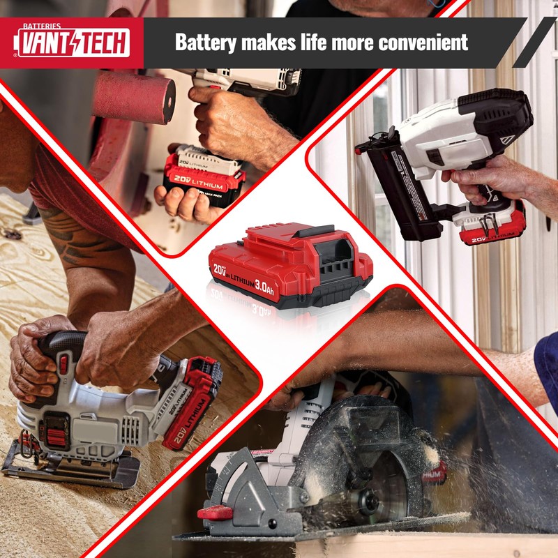 - Battery Specification:Brand New| 2Pack | Type: Lithium-ion Battery | Voltage: 20V | Capacity:3.0Ah/3000mAh | Compatible with Porter Cable 20V Cordless Power Tools