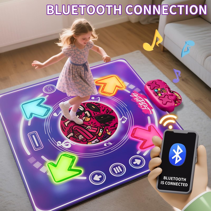 - Bluetooth Function - Do you want to experience more music? Compared with other dance mats, we have newly designed Bluetooth functionality. Simply pair it with your phone or any Bluetooth-enabled device to effortlessly switch tracks and dance to children favorite tunes! It’s a fun way to encourage children to exercise while nurturing their musicality and developing dance skills. Suitable dance mat for kids girls boys ages 3-5 4-8 8-12.