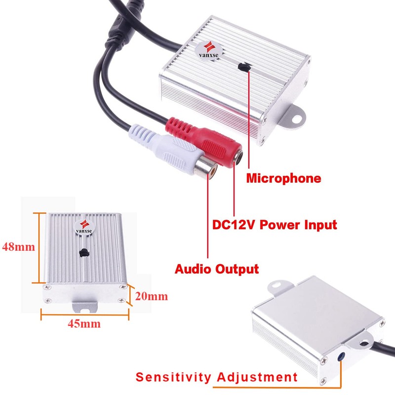Vanxse® Mini Microphone High Sensitive Pickup Audio Mic Waterproof Metal Case for CCTV Security Camera DVR System