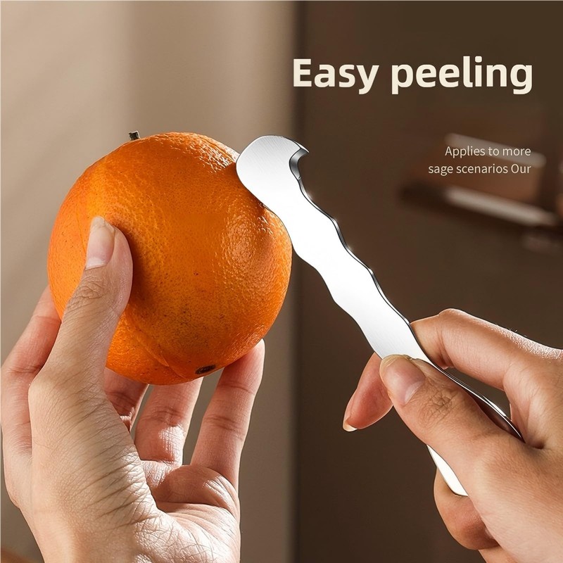 Transform your citrus-peeling experience with this sleek 304 stainless steel orange peeler. The ergonomically designed handle and curved blade make quick work of tough citrus peels, allowing you to remove orange, lemon, and other citrus rinds effortlessly without damaging the fruit beneath. Its compact size makes it perfect for storing in any kitchen drawer, while the durable construction ensures long-lasting performance. The clever hook-shaped tip helps initiate the peeling process with precision, while the triangular handle opening provides convenient hanging storage. This versatile kitchen tool saves time and effort compared to manual peeling, making it an essential addition to your kitchen gadget collection. Perfect for preparing fresh citrus fruits for snacks, recipes, or garnishes, this peeler combines functionality with durability for everyday use.