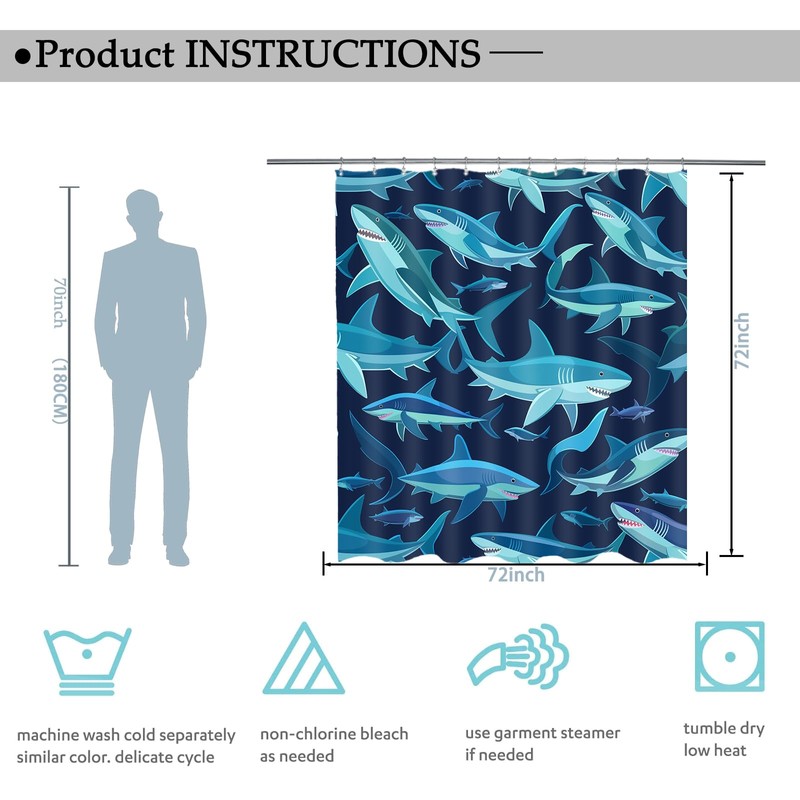 VANZEV Ocean Shark Pattern Shower Curtain,Sea Predators Decor, Ocean Themed Bath Curtain, Waterproof Polyester Fabric with 12 Hooks, 72x72 Inches