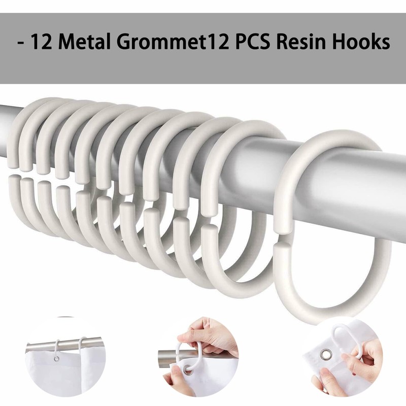 - Standard size: Measuring 72 inches wide x72 inches high, it fits most standard bathtubs and showers. Provides 12 durable plastic hooks for easy installation and removal to ensure the shower curtain hangs firmly.
