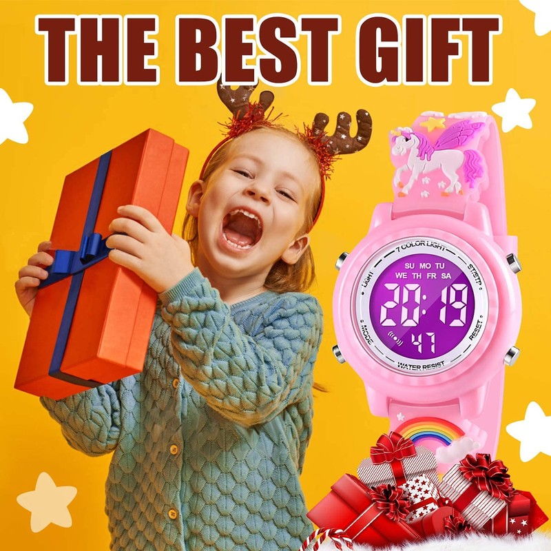 - UNIQUE DESIGN: This unicorn kids watch is design for 3-10 year old girls, each strap with cartoon unique design, kids look more vigorous, happy and lovely when they wear the cute watches on wrist. Childrens will definitely love it and really the best gifts for girls age 3 4 5 6 7 8 9 10.