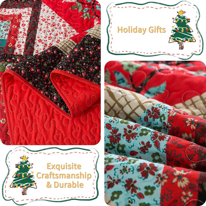 - 【Elegant & Durable】 This king size Christmas quilt (98"x106" quilt + 20"x36" pillowcases) features floral motifs with triple-layer reinforced stitching to prevent filling shift and ensure lasting durability.