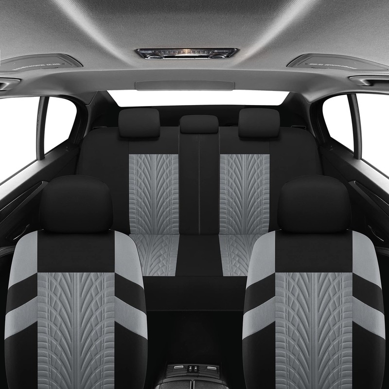 VarCozy Car Seat Covers Full Set, Front & Split Rear Bench for Car, Universal Cloth SUV, Sedan, Van, Automotive Interior Covers, Airbag Compatible, Black&Grey (VC-01-B1)