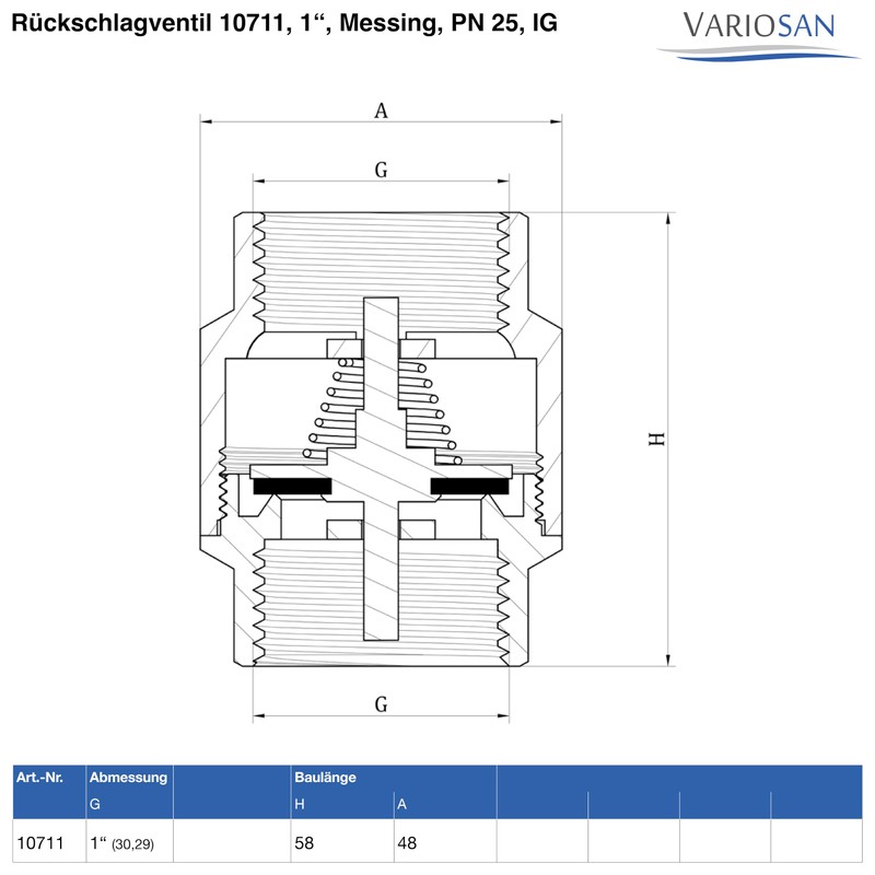 Variosan One-Way Valve, Brass, PN 25, IG.