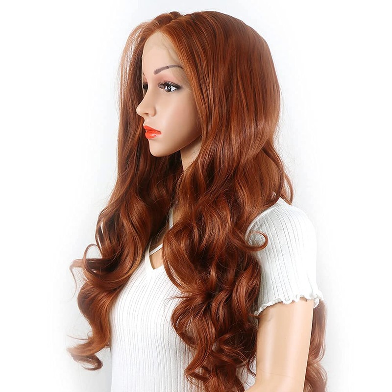 variouswig All Kinds of Everyday Natural Wigs Synthetic Lace Front Wigs Side Part Long Body Wave Heat Resistant Synthetic Wigs for Women Cosplay Party (Brown red)