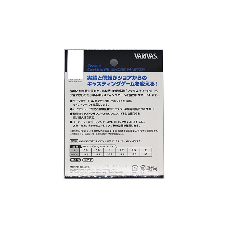 VARIVAS PE Line Avani Casting PE Max Power X8 Shore Master, 656.2 ft (200 m), No. 1.2, 24.1 lb, 8 Pieces, White
