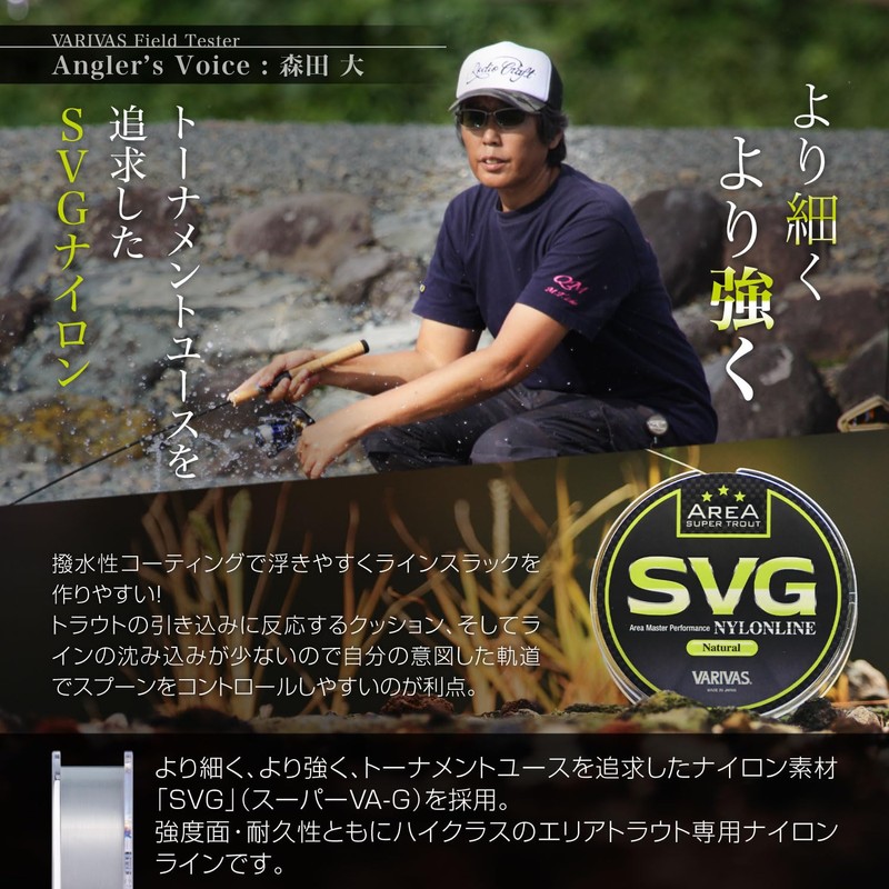 - Model: SVG (Nylon)... SVG nylon line boasts a thin, strong and super high strength with a water-repellent coating that makes it easy to float. High class for tournament use