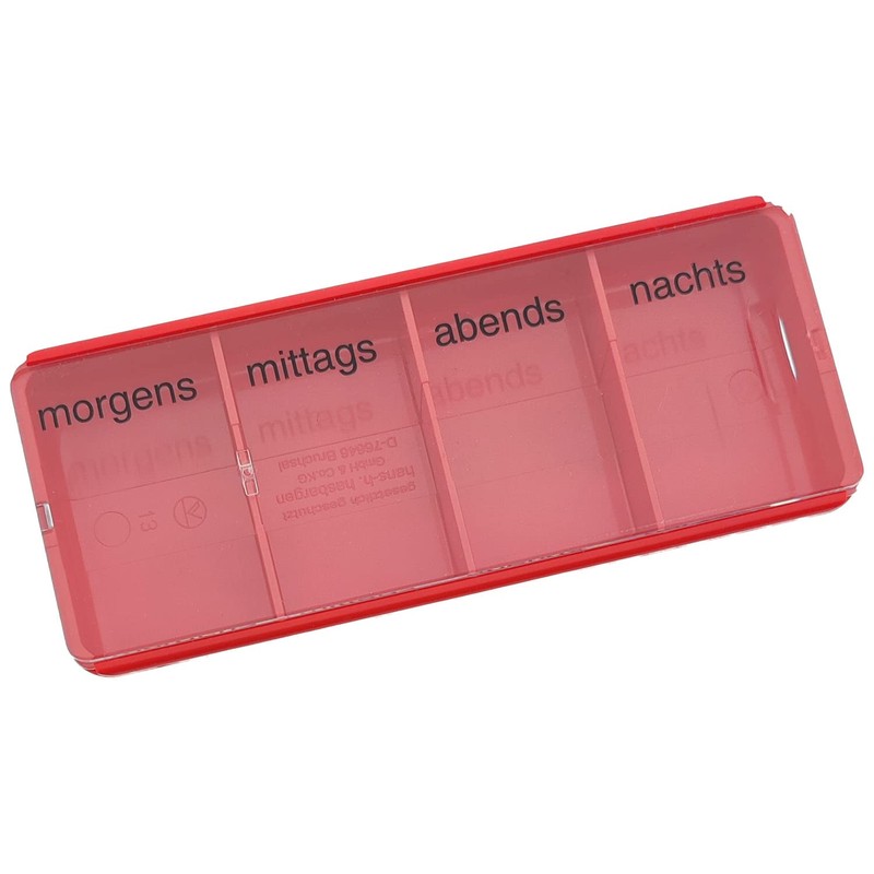 Size of tablet compartments: approx. 2.5 cm x 4.0 cm x 1.5 cm.