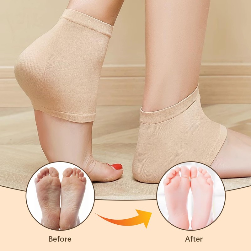 - BUILT-IN GEL PADS Each pair of toe free heel socks features moisturizing gel pads in the heel area. These gel pads can be used in conjunction with skin care products to provide intensive moisturizing treatment.