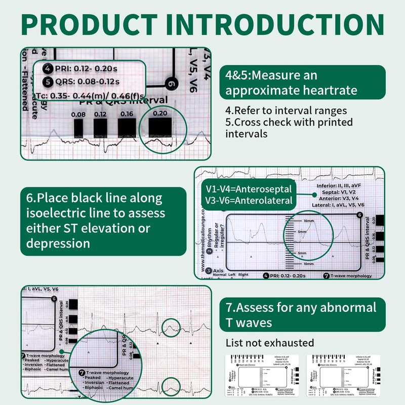 - ECG 7 Step Ruler: A transparent ID sized card making ECG interpretation easy. Suitable for anyone undertaking ECG/ EKG practise from a student up to an experienced clinician