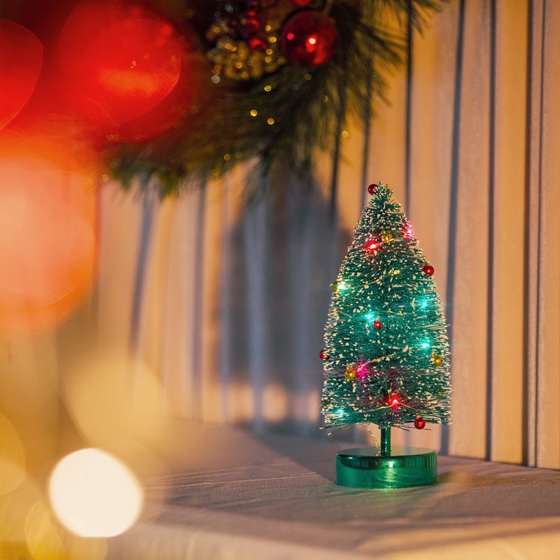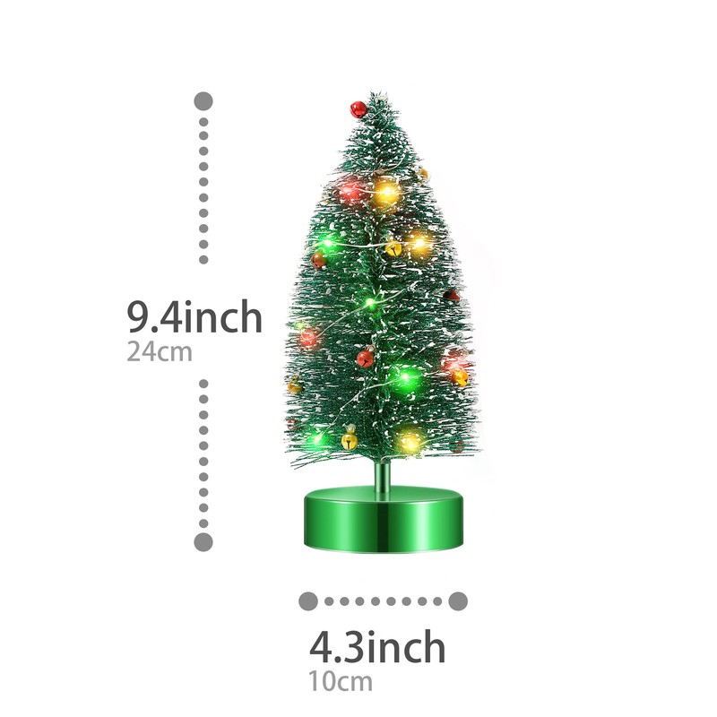 - 【Christmas Tabletop Tree】The tree is made of PVC snowy tips with glitter, iron base and lamp string. Create detailed Christmas atmosphere in your table.