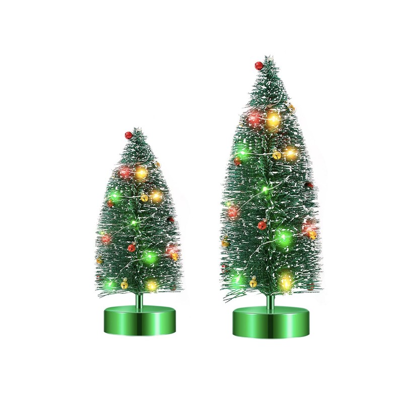 Varmax Mini Christmas Tree with Lights Prelit Christmas Tree Tabletop Tree Bottle Brush Trees 9.4‘’ and 13.8", Green