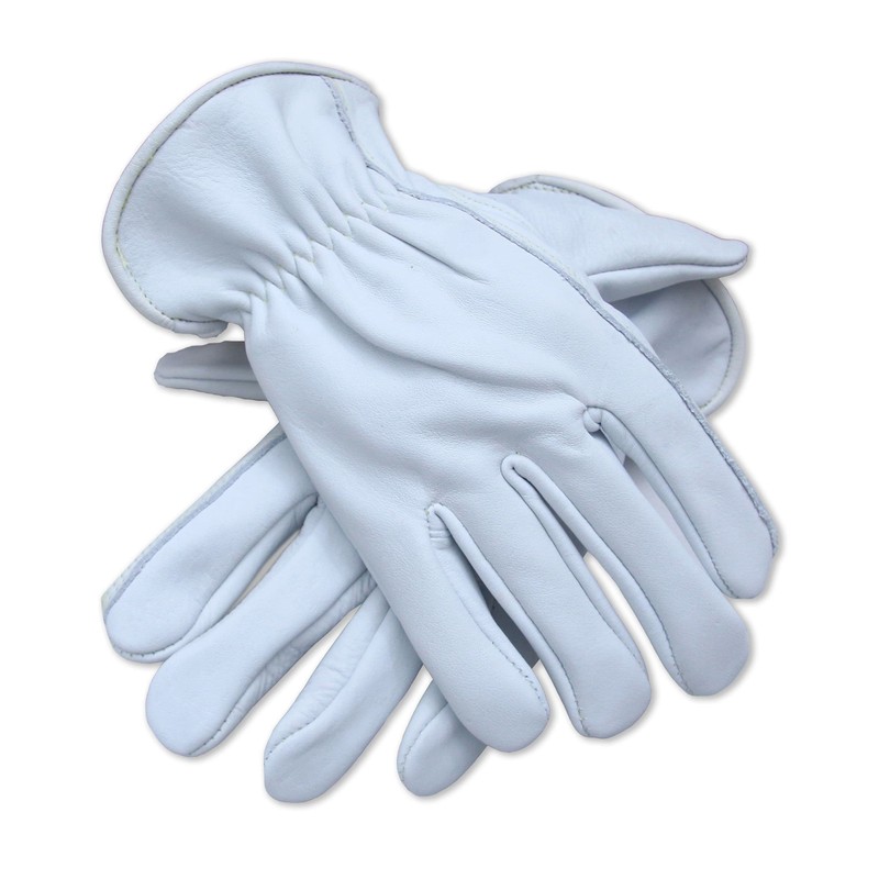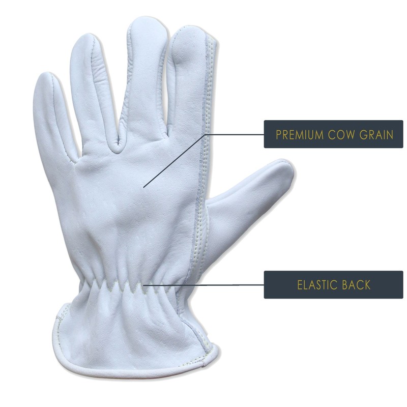Varmex Leather Work Gloves for Men Safety Construction Driving Farming Gardening Warehouse Handling (White, Extra Large)