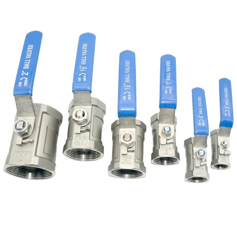 VARMHUS 2PCS 1-1/4" Stainless Steel 304 Ball Valve 1Pc Type NPT Female Threaded with Heavy Duty Blue Vinyl Insulation Handle,CF8M Ristricted Flow,1000 WOG (2PCS 1-1/4")