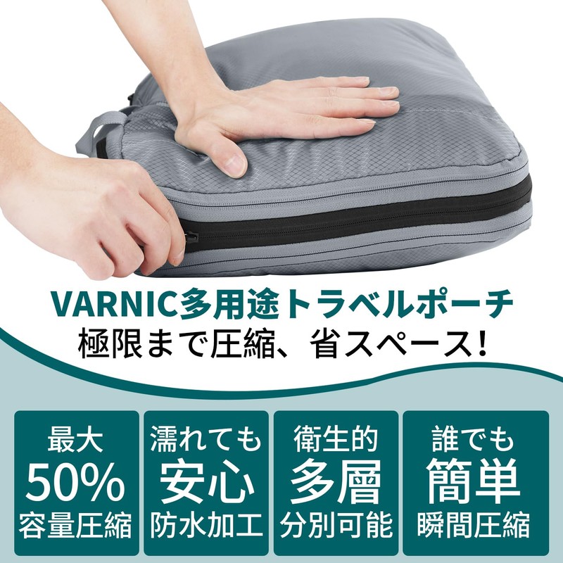 VARNIC Travel Compression Bag, Compression Bag, Clothes Storage, Clothing Sorting, Compact, YKK Zipper, Travel Pouch, Compression, Waterproof Travel Pouch, Convenient Goods, Compression to Save Space