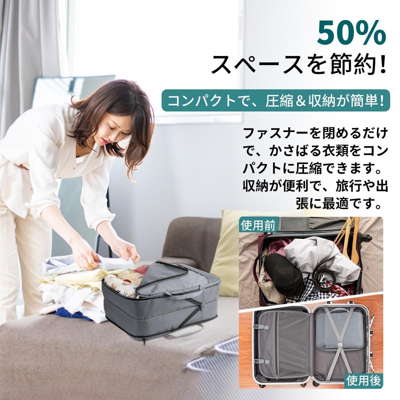 - Space-saving: The zipper design compresses with the outer zipper and saves approximately 50% of the space inside your suitcase. Travel compression bags hold more clothes and keep your suitcase neat and tidy. Provides a safe and comfortable travel and business trip