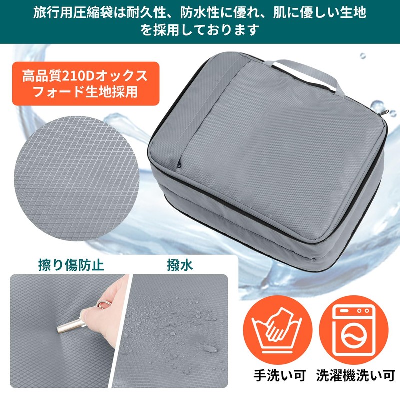 - Material: The travel compression bag is made of high quality 210D Oxford fabric, waterproof, durable, and scratch-resistant. The surface is smooth and prevents water from entering. Machine washable and quick drying