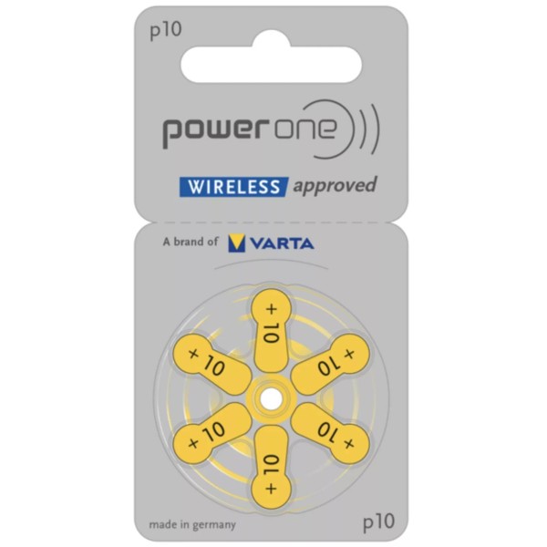 10 Packs of 6 Power One size 10 (yellow) hearing aid batteries. 60 Batteries total. Free Shipping. Not the right size? Check out the other hearing aid batteries and supplies we have for sale!