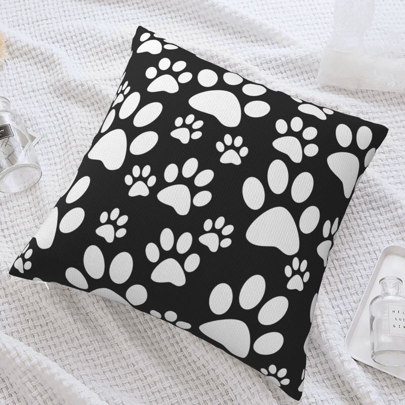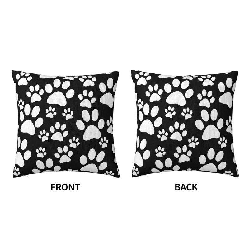 VARUN White Dog Paws on Black Background Throw Pillow Covers Lovely Animal Art Design Square Pillowcases for Home Decor Sofa Car Bedroom Pillow case 18x18inch