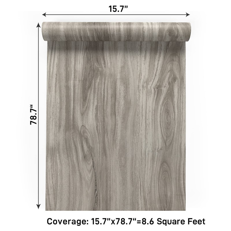- Wood Contact Paper 🏡 Size&Pattern: 15.7 inch wide by 78.7 inch long, total 8.6 square feet. Faux wood contact paper, premium painting ensures no fading for years. Made of durable vinyl, thick, not tear easily, textured finish