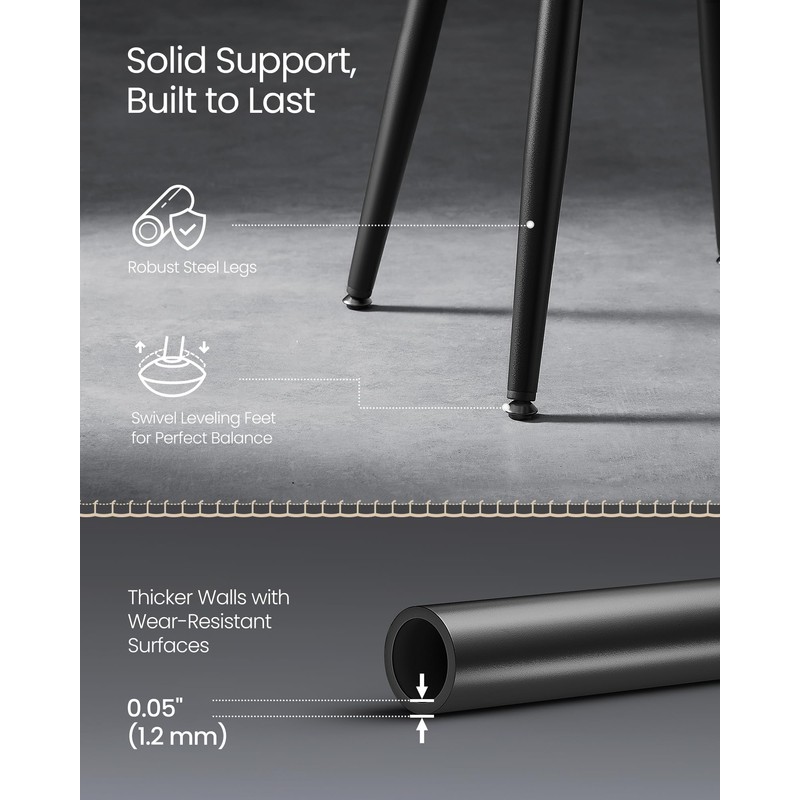 - [Strength Meets Stability] The robust steel legs of these kitchen chairs form a firm foundation, effortlessly supporting up to 265 lb. The swivel leveling feet ensure stability, even on slightly uneven surfaces, and prevent floor scratches